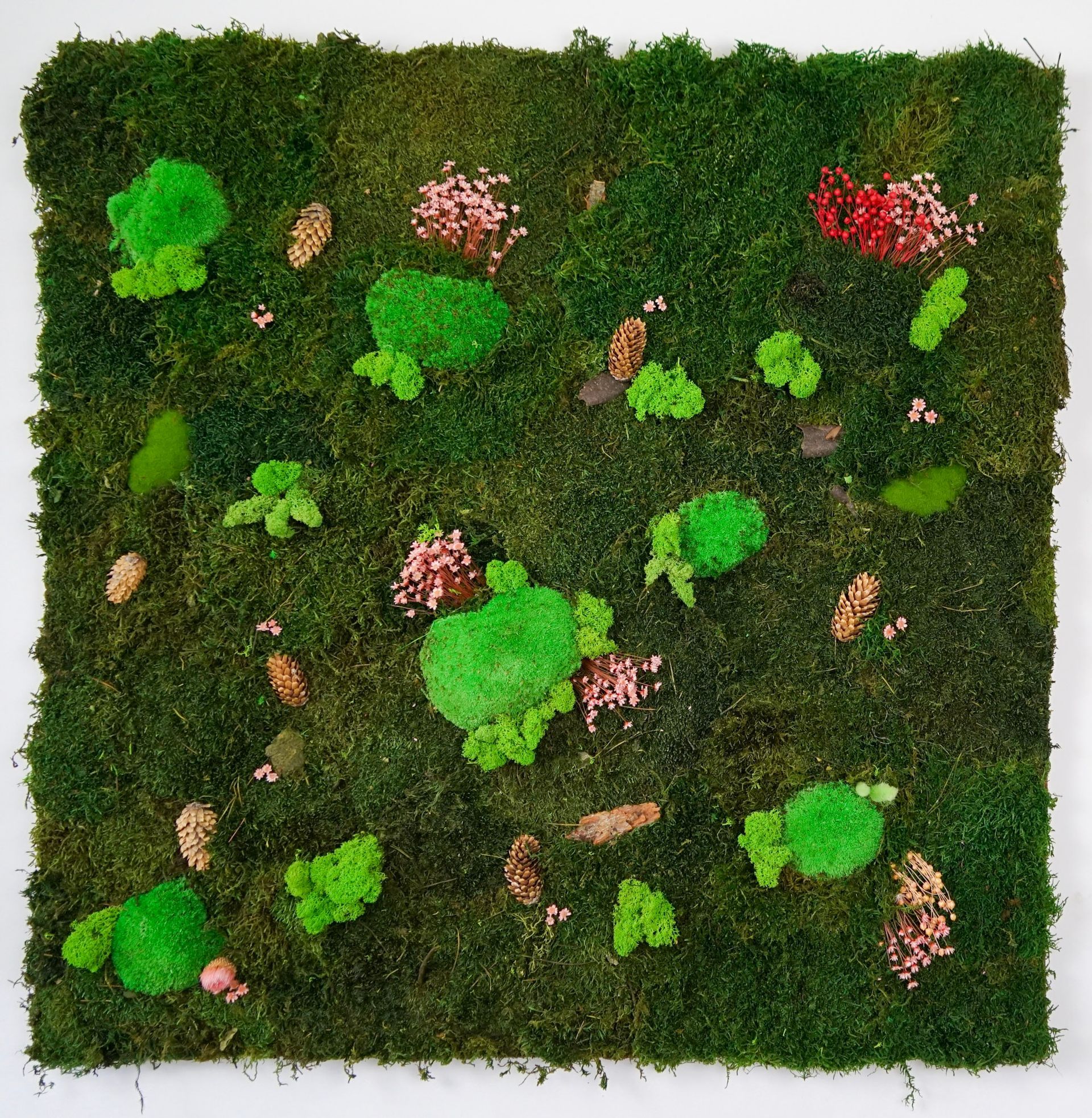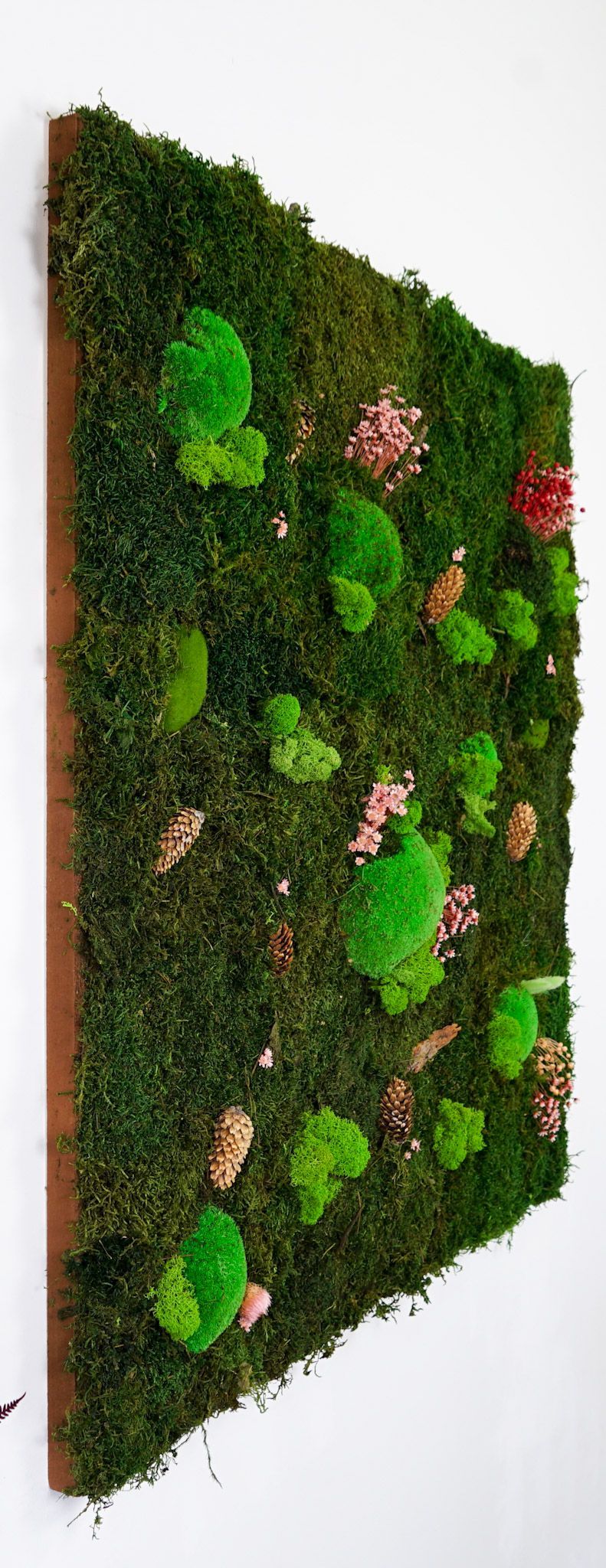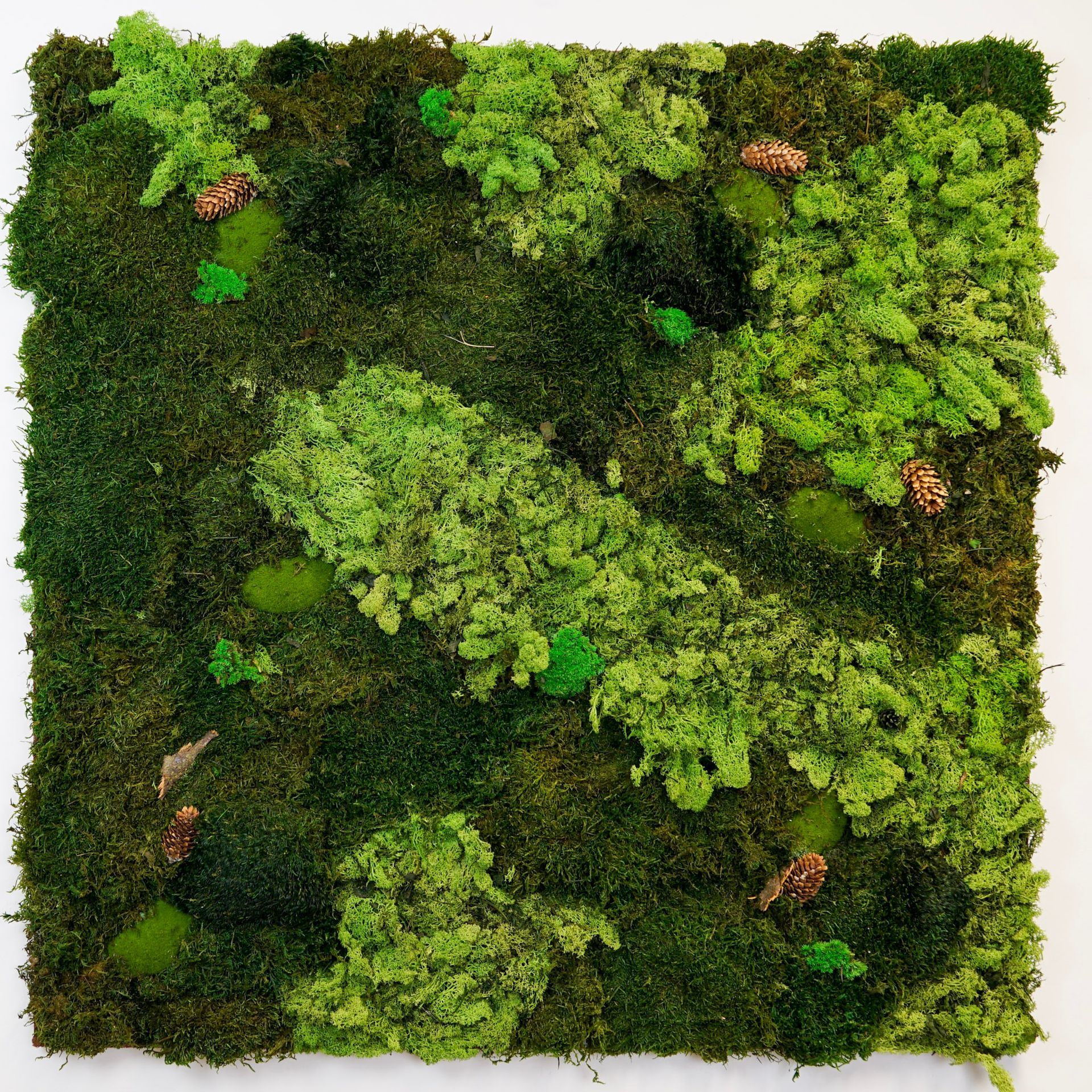 Beim Canor Moosabsorber schmücken verschiedenen Moosarten die Oberfläche, die in kräftigem, langanhaltenden Grüntönen erstrahlen und so ein natürliches Ergebnis gewährleisten.